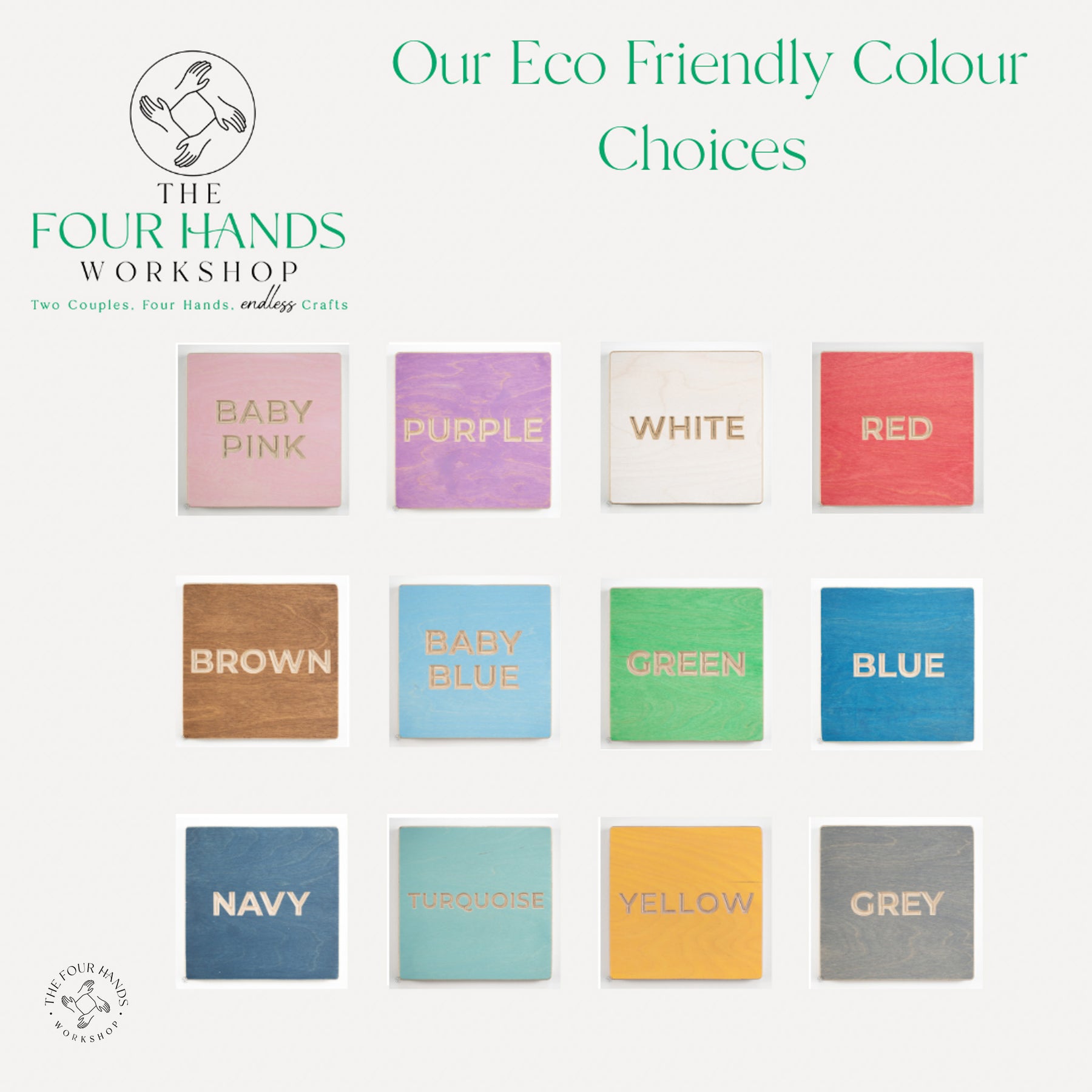 Every board features a painted front and a horizontal key hole on the back for easy hanging. It depends a little on the colour and finish you choose, but the grain of the wood is usually visible through the coloured stain.